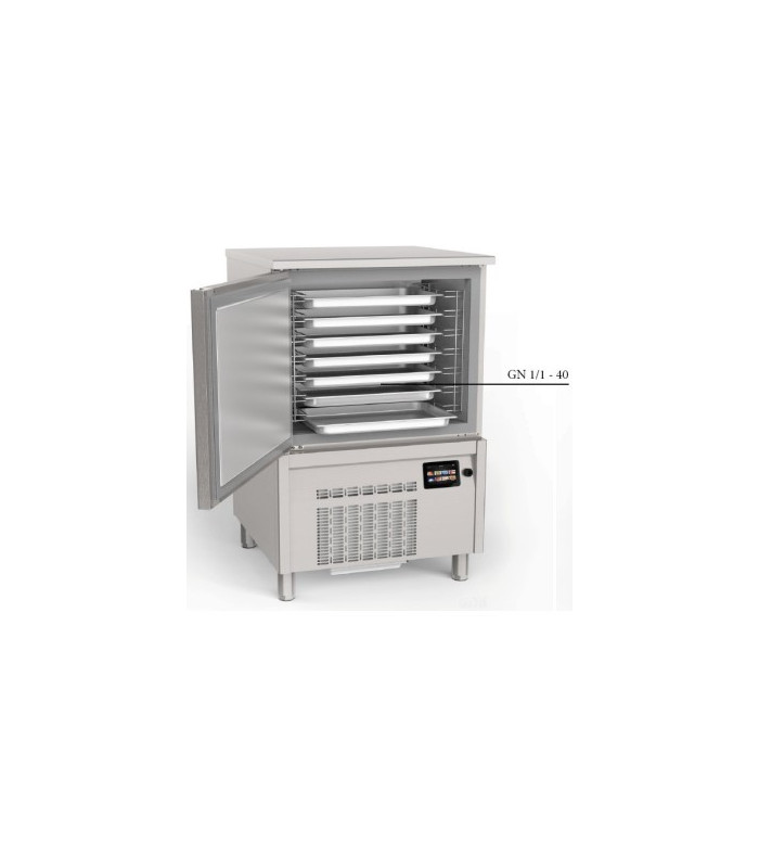 Este modelo combina potencia frigorífica, pantalla táctil avanzada, y capacidad para 7 bandejas GN 1/1 o 600x400, todo ello en una estructura sólida de acero inoxidable.