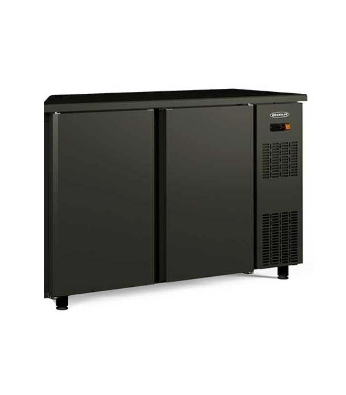 Bajo mostrador refrigerado Docriluc DSB-150 con puertas abatibles opacas. Ideal para bares o locales que necesitan frío fiable sin exposición del producto, con fondo compacto y diseño encastrable.
