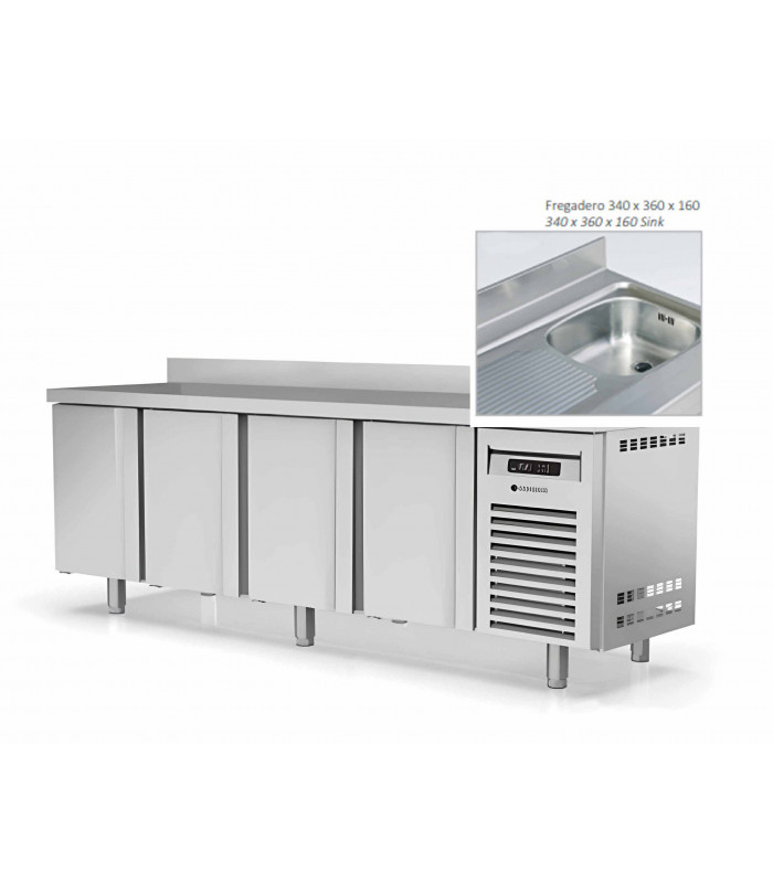 Nevera bajo mostrador fregadero coreco MRGF-250 en inox con 4 puertas con tirador integrado FONDO 700,.
