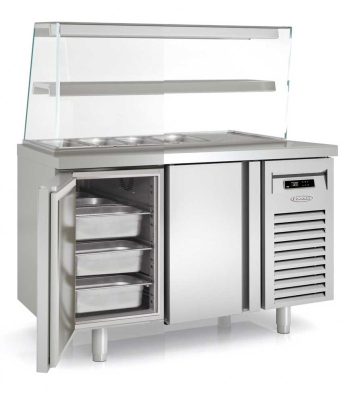 Porque sabemos que en muchas cocinas se trabaja en línea, con ingredientes, platos y personal compartiendo espacio. Este modelo te permite organizar frío y trabajo en vertical sin sacrificar accesibilidad ni higiene.