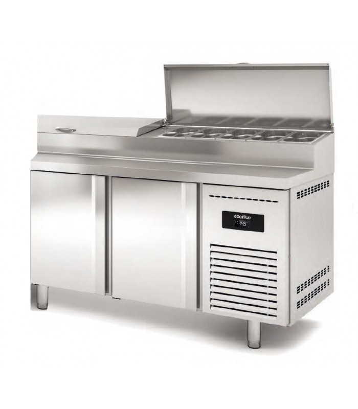 Mesa refrigerada Docriluc MIE-80-150 | GN 1/4 compacta con encimera. Capacidad de 362 L, 8 cubetas GN 1/4, 2 estantes y control digital.