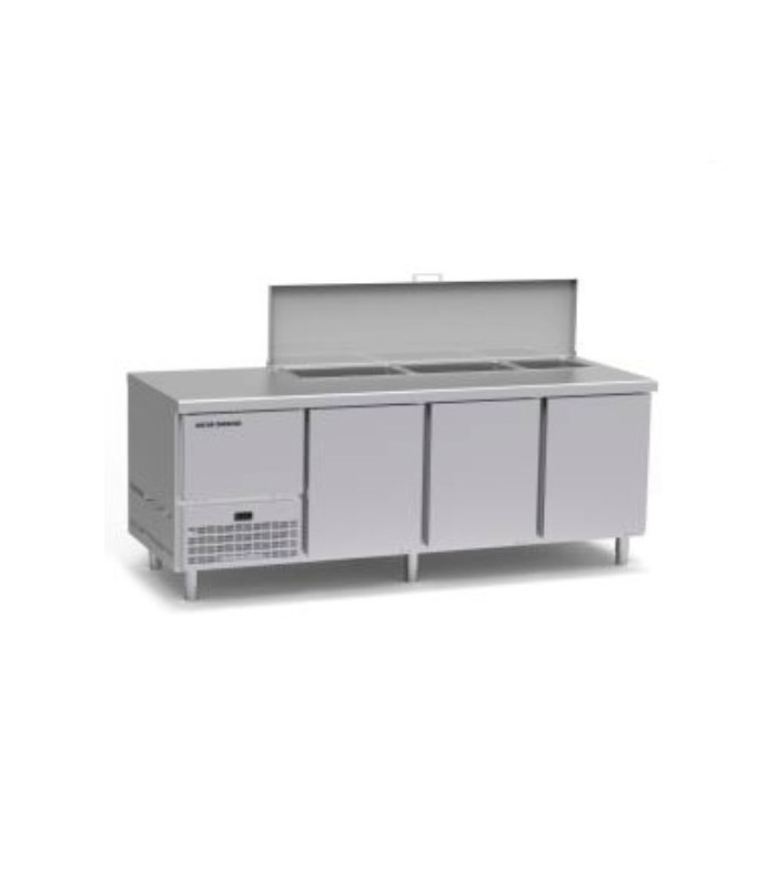Gracias a su diseño compacto y su sistema de refrigeración eficiente, esta mesa se adapta a cualquier punto de servicio, mostrador, autoservicio o línea de montaje, siempre manteniendo los productos frescos y listos.