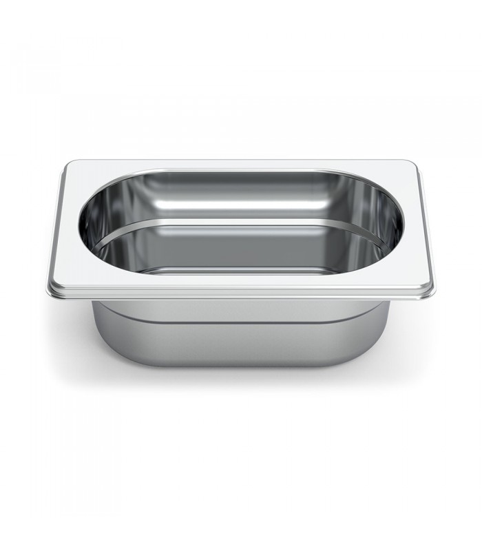 Bandeja gastronorm 1/9 lisa de 100mm de profundidad en acero inoxidable AISI 304 18/10. Medidad en mm: 176x108mm ideal tanto para cocinar como en preparaciones. Una capacidad de 0.8 litros.