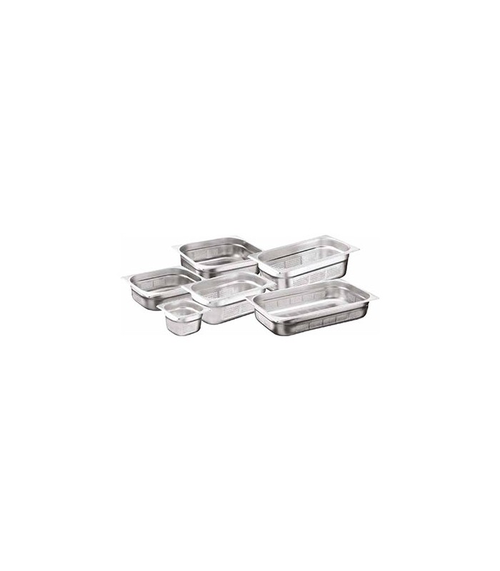Bandeja gastronorm 2/1 perforada de 150mm de profundidad en acero inoxidable AISI 304 18/10. Medidas en mm: 650x530mm ideal tanto para cocinar como en preparaciones. Una capacidad de 40 litros.