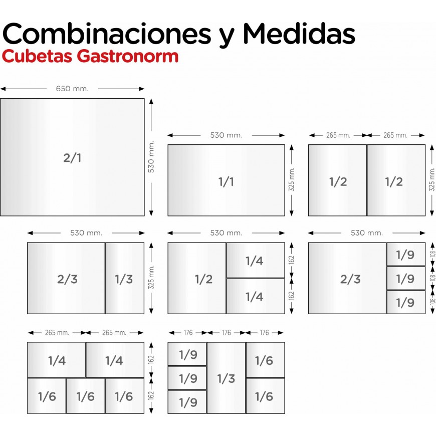 Como veréis en la siguiente y práctica imagen que os permitirá el poder elegir la medida correcta de los gastronorm que preciseis.