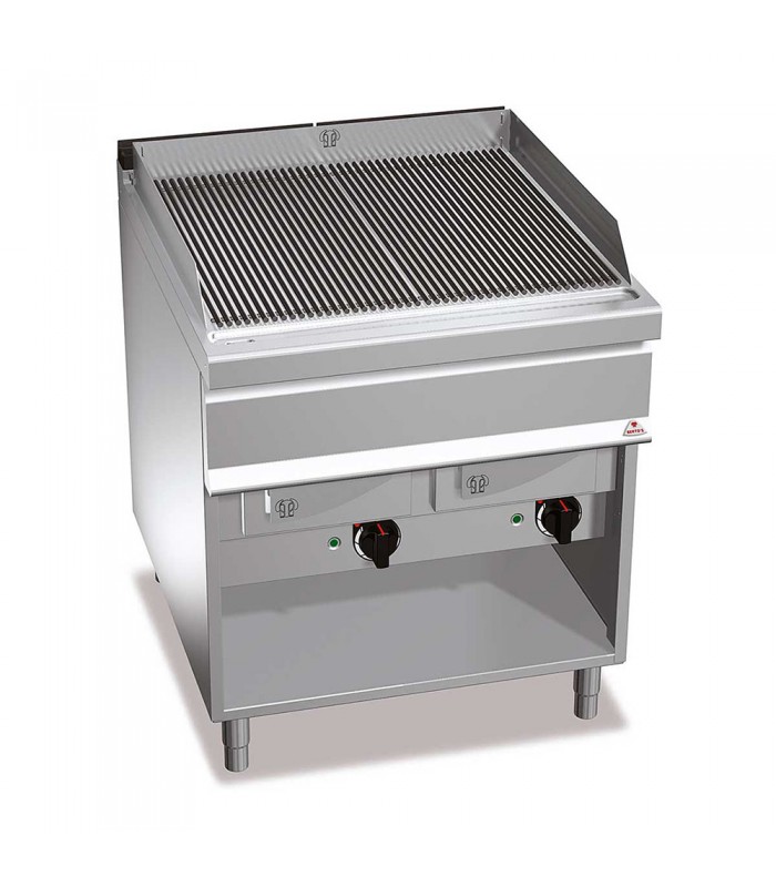 Parrilla profesional a gas Berto's G9WG80M con fondo de agua fondo 900mm con soporte, en linea con las cocinas Berto's.