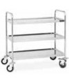 Carro de servicio FD260404 con 3 estantes de DISTFORM Gran robustez permiten el transporte de grandes cargas. Fabricados en acero inoxidable de calidad. Ideales para todo tipo de negocios de hosteleria, ya sean restaurantes, bares, chiringuitos, hoteles, colectividades, escuelas, hospitales, residéncias, tiendas de alimentación e industria alimentária...