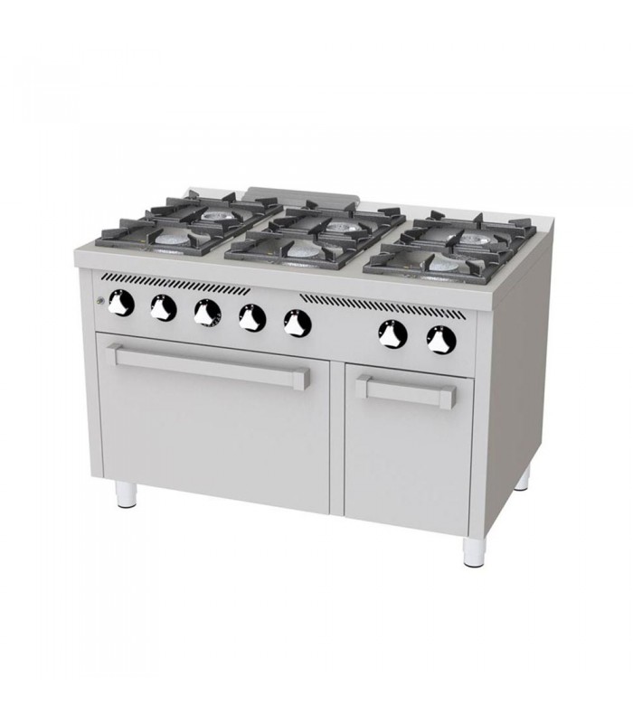 Consigue la cocina industrial a gas FAINCA HR C6F900H QUE SE ELEVA PARA PODER REPARARSE CON FACILIDAD. Cocina de seis fuegos serie 750 a gas con horno y un sistema de elevación de la encimera cuyo objetivo es mantener la limpieza y solidez de una encimera hermética sin perjudicar el acceso a las piezas interiores.