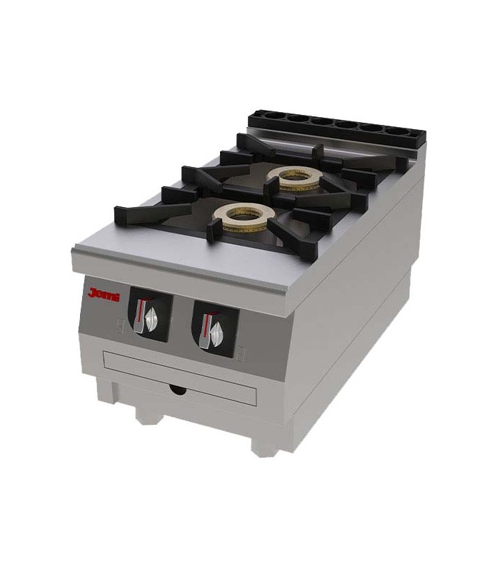 La S721 de Jemi pertenece a la serie profesional S750 EV, desarrollada para ofrecer alto rendimiento térmico y máxima robustez en entornos exigentes. Con solo 40 cm de ancho, esta cocina de sobremesa ofrece dos fuegos potentes de 7,4 kW cada uno, lo que la convierte en una solución ideal para cocinas compactas que no pueden renunciar a la productividad.
