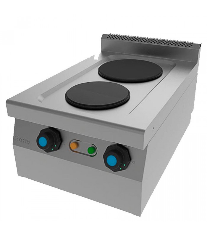 La cocina eléctrica Jemi S602E es una solución compacta y robusta pensada para cocinas profesionales que necesitan un equipo fiable, eficiente y de fácil instalación. Perteneciente a la serie 600 EV, este modelo sobremesa incluye dos placas eléctricas de distintos diámetros y potencias, permitiendo un uso versátil en espacios reducidos o como estación auxiliar en cocinas más grandes.