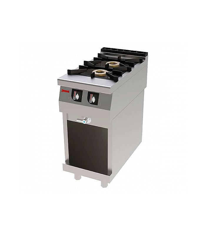 Cocina a gas T721 CHEF de JEMI. 2 fuegos potentes de 7,4 kW y estructura elevada con altura de trabajo de 850 mm.