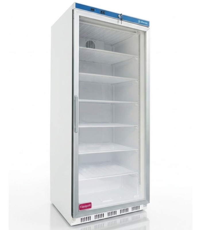 Congelador expositor Edenox ANS-601-C HC vertical con puerta de cristal. Armario congelador profesional de 469 L de capacidad con temperatura de -10 °C a -25 °C, iluminación LED interior y triple cristal anti-vaho para una excelente exposición de producto congelado.