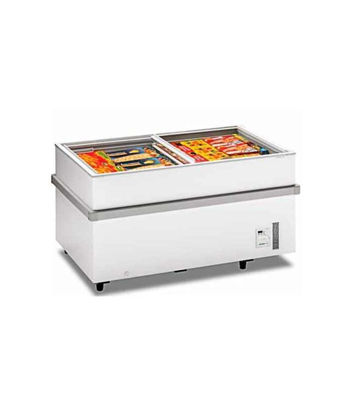 El congelador horizontal para supermercados Infrico IL 1500 HC con puerta corredera ideal para tiendas y supermercados. Con una capacidad neta de 459l.