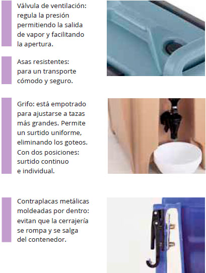 Descubre los contenedores isotérmicos para líquidos CAMBRO, la mejor opción para profesionales de catering, colectividades, hostelería y eventos. Contenedor isotérmico para líquidos. Ideales para bodas, eventos o caterings. Para guardar, transportar y servir bebidas calientes o frías.