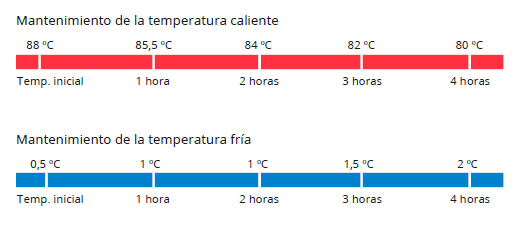 Mantiene líquidos fríos por debajo de 2 °C durante 4 horas.