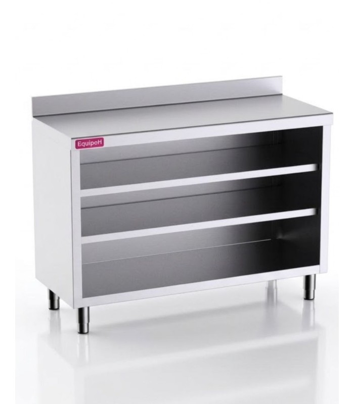 Mueble contramostrador de acero inoxidable con encimera fondo 600 y 2 estantes