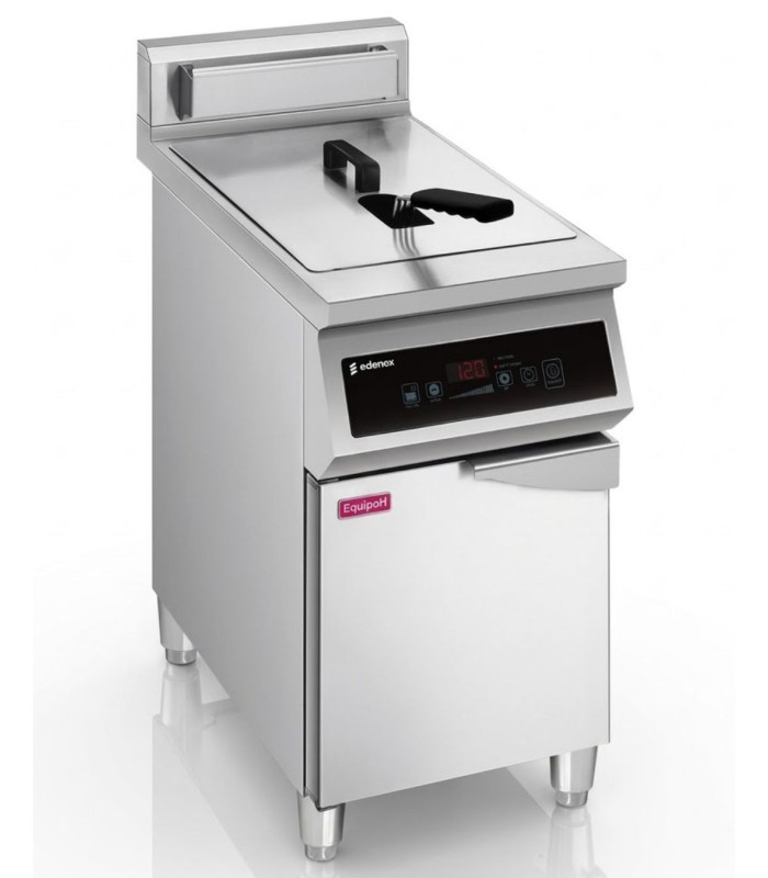Freidora de inducción Edenox INDUFRY 700-40-P profesional con mueble. Freidora industrial con 30 litros de capacidad, 10 kW de potencia y control digital de temperatura, diseñada para ofrecer frituras precisas y seguras.