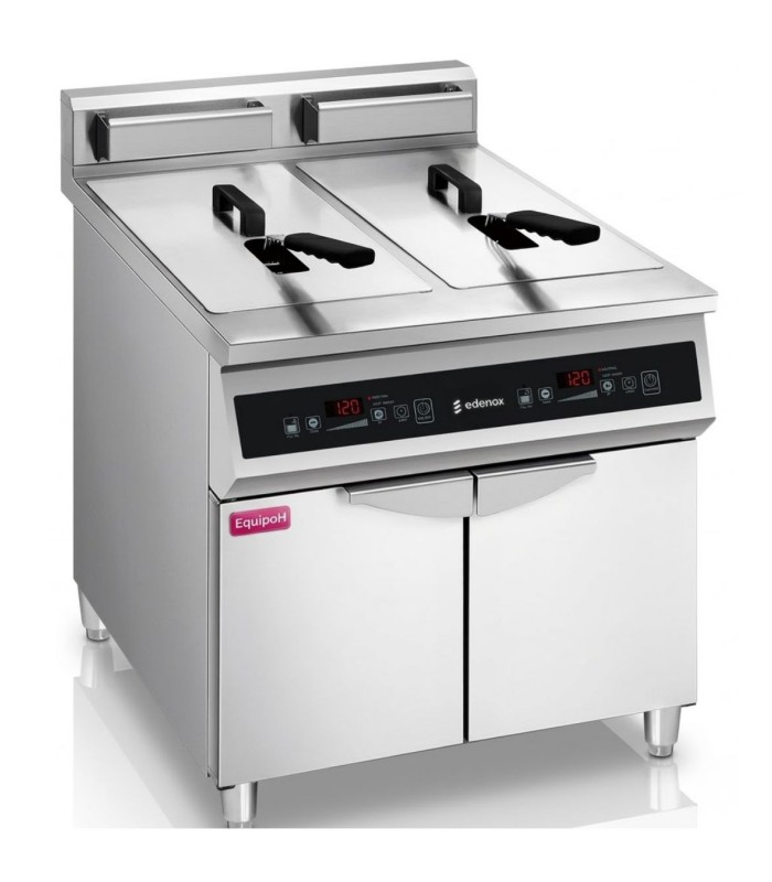 Freidora de inducción Edenox INDUFRY 700-80-P doble cuba profesional. Freidora industrial con 2 cubas de 30 litros, 20 kW de potencia total y control digital de temperatura, diseñada para frituras intensivas con máxima precisión.