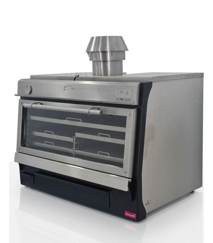 Este horno combina las ventajas de una parrilla tradicional con la eficiencia de un horno cerrado. Esto permite sellar carnes rápidamente, mantener su jugosidad interior y aportar el característico sabor del carbón vegetal.