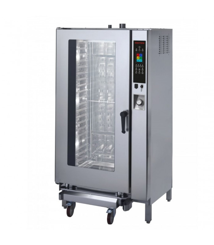 Horno mixto programable a gas Inoxtrend CDT–120 G, con capacidad para 20 bandejas GN 1/1, para todo tipo de cocinas incluidas las más pequeñas que puede trabajar con cocción a vapor y convección (Vapor directo / Convección /Convección-vapor).