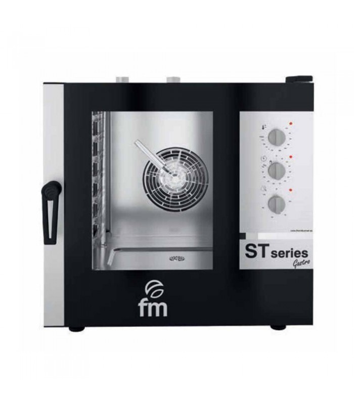 Horno industrial a gas FM STG 71M GAS de convección perfecto para hostelería, un modelo con capacidad para 7 bandejas de GN 1/1 .Con panel manual regulable en temperatura, tiempo y humedad.