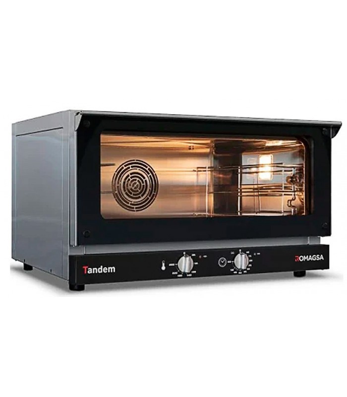 El Tandem3Plus de Romagsa es una opción profesional ideal para panaderías, pastelerías y cocinas que trabajan con ritmos altos y necesitan un horno compacto pero potente. Diseñado para bandejas de 60x40, este horno garantiza una cocción uniforme gracias a sus 2 motores, su interior en acero inoxidable y el sistema de convección con inversión de giro.