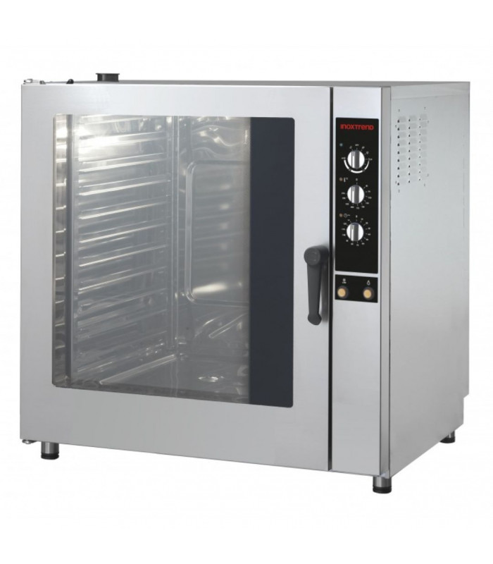 Horno mixto analógico eléctrico Inoxtrend CDA-211E, con capacidad para 11 bandejas GN 2/1, para todo tipo de cocinas incluidas las más pequeñas que puede trabajar con cocción a vapor y convección (Vapor directo / Convección /Convección-vapor).