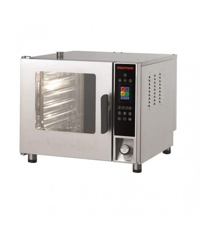 Horno eléctrico mixto industrial Inoxtrend RDT-105E con capacidad para 5 bandejas GN 1/1. Una opción muy completa que gracias a su reducido tamaño será ideal para cualquier tipo de cocina. Cuenta con un panel digital y con programas automáticos de cocción, 67 programas de los cuales 37 memorizados. Programable.