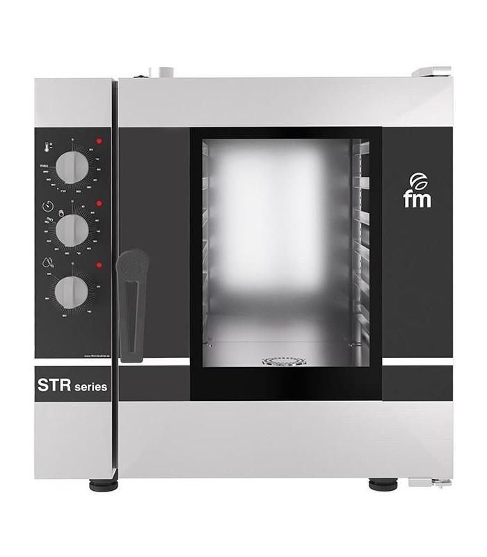 Horno industrial eléctrico STR 106 M de FM Industrial, con capacidad para 6 bandejas 1/1 (posición de bandeja longitudinal) Una opción perfecta que nos permitirá cocinar cómodamente cualquier tipo de alimento y conseguir unos resultados perfectos. Un horno compacto básico y económico ideal para empezar o para tener un horno de refuerzo.