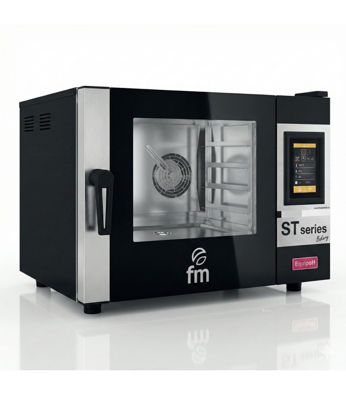 Horno Eléctrico STB 604 V7 de FM Industrial, modelo con capacidad para 4 bandejas GN 1/1O 4 600X400MM, una opción perfecta tanto para panadería como para hostelería que nos permitirá cocinar cómodamente cualquier tipo de alimento y conseguir unos resultados perfectos. Cuenta con alarma de fin de ciclo, humedad regulable, control de velocidad, vidrio abatible limpieza cómoda. PANTALLA TÁCTIL V7