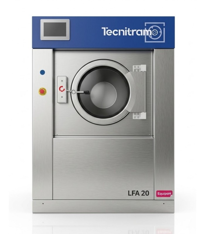 Lavadora industrial Tecnitramo LFA-20 20kg alto factor G 400. Equipo profesional con centrifugado a 1000 rpm, control PLC y dosificación automática.