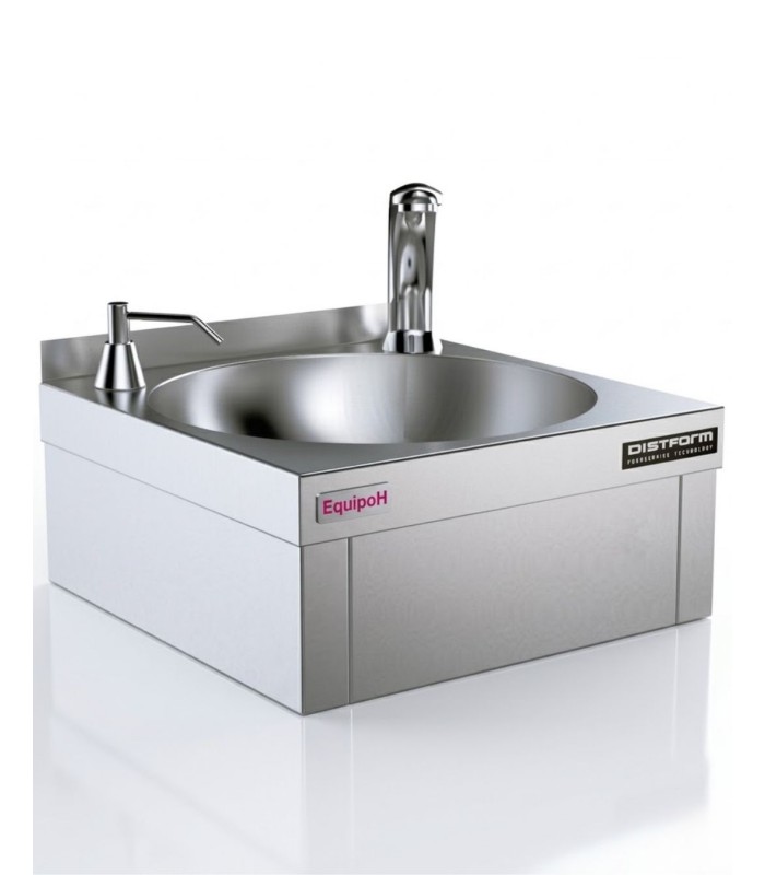 El lavamanos mural con grifo electrónico de Distform está diseñado para entornos donde la higiene sin contacto es un requisito indispensable. Gracias a su sensor de activación automática, evita la contaminación cruzada y optimiza el uso del agua. Con estructura de acero inoxidable, cubeta redonda amplia y opciones con dispensador de jabón integrado, es ideal para cocinas industriales, laboratorios, colectividades y zonas de manipulado alimentario.