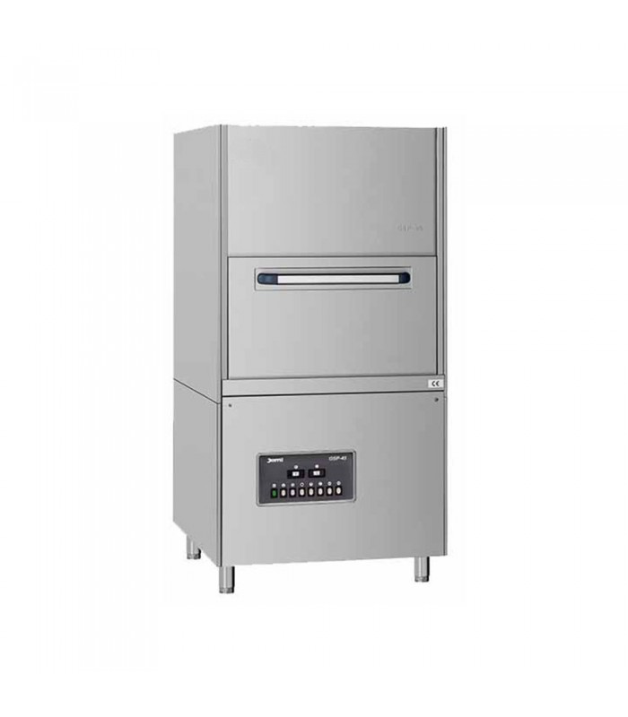El GSP-45 está diseñado para solucionarlo. Con su altura útil de 700 mm y su potente bomba de lavado de 2 kW, es ideal para todo tipo de menaje voluminoso. Y lo mejor: sin perder ritmo de trabajo.