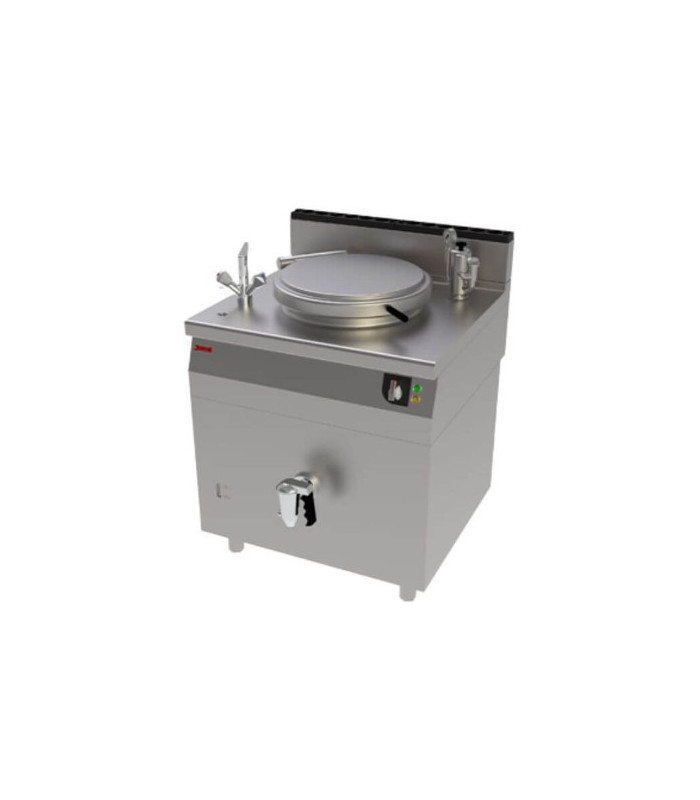 Con una capacidad de 50 litros y sistema de calentamiento eléctrico, está diseñada para procesos que requieren suavidad en la cocción, como cremas, salsas o purés.