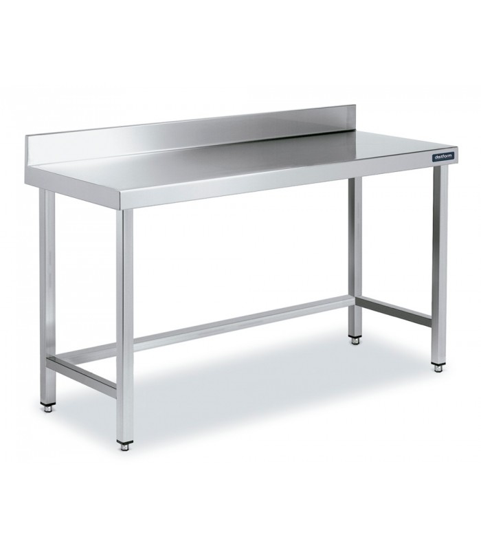 Mesa mural Distform altura 600 con marco de refuerzo en acero inox. Ideal para cocinas que usan equipos de sobremesa apoyados contra pared.