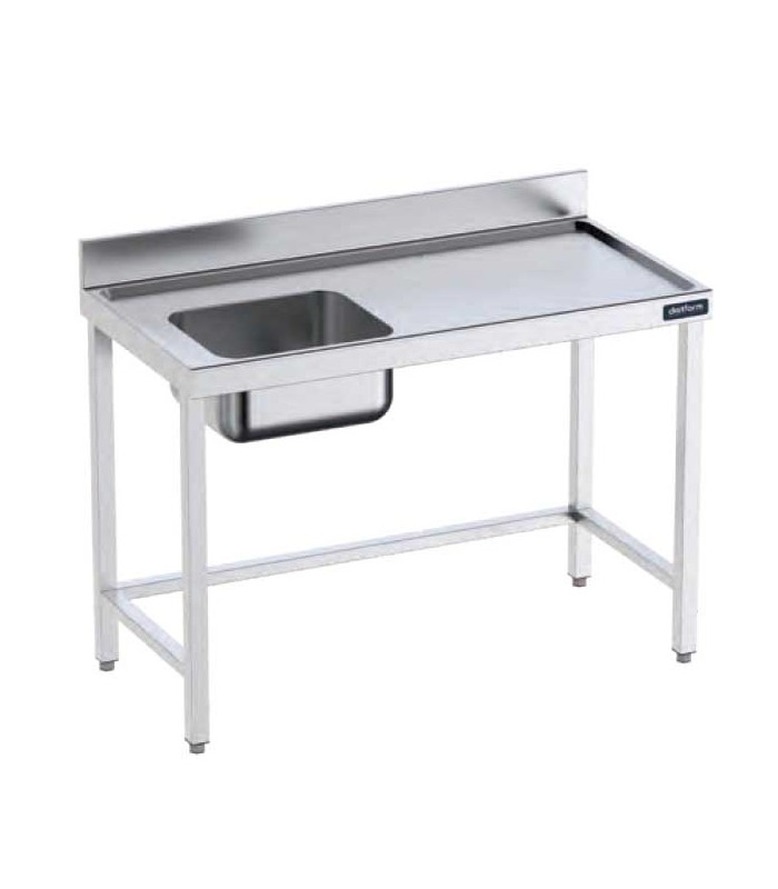 Mesa mural Distform gama 600 con cubeta y perfil salvaaguas. Con refuerzo interior y patas regulables para uso profesional.