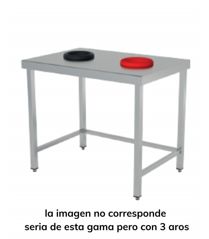 Gama de Mesa de reciclado central 3 aros fondo 500 disponible en 3 largadas: 1400, 1500 y 1600mm. ideal tanto para hosteleria, como industria como laboratorios y colectividades.