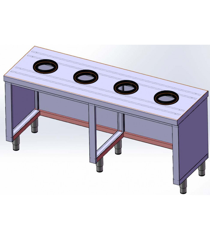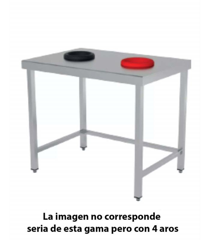 Gama de Mesa de reciclado central 4 aros fondo 500 disponible en 3 largadas: 1800, 2000 y 2200mm. ideal tanto para hosteleria, como industria como laboratorios y colectividades.