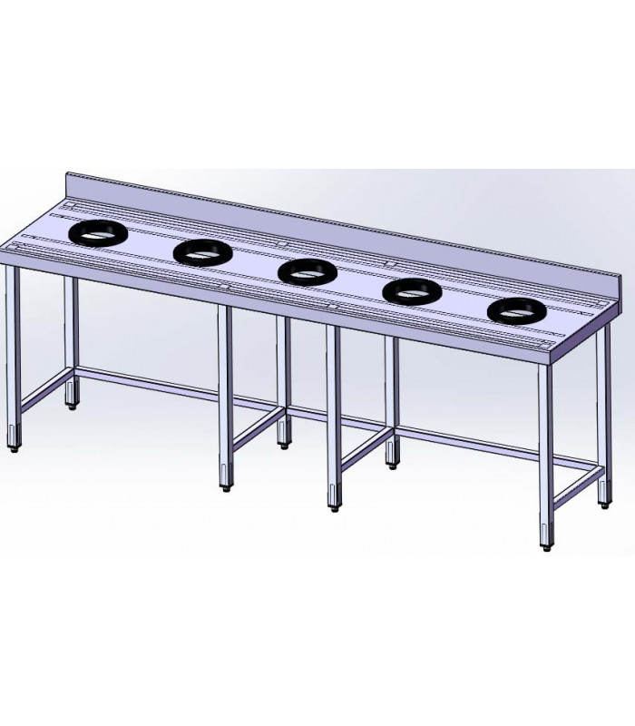 Gama de Mesa de reciclado central 5 aros fondo 600 disponible en 2400mm. ideal tanto para hosteleria, como industria como laboratorios y colectividades.