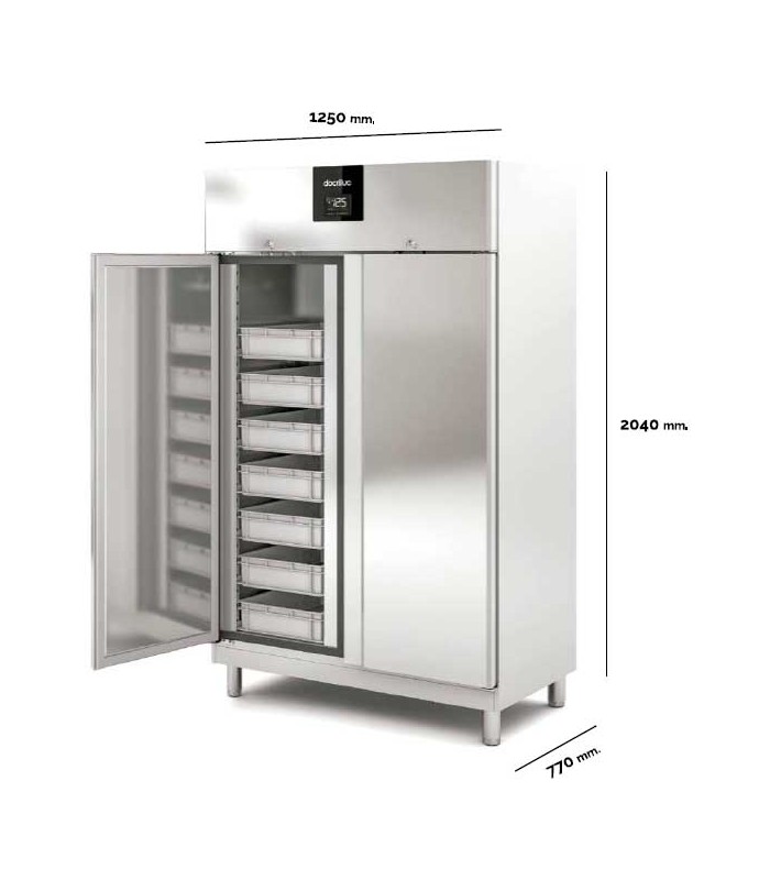 Nevera para pescado Docriluc CAERP-125-14 – Puertas inox, alta capacidad. Pensada para conservar pescado fresco de forma profesional, con 979L de capacidad y gran eficiencia energética. Ideal para cocinas industriales, colectividades y obradores con alto volumen de producto refrigerado.