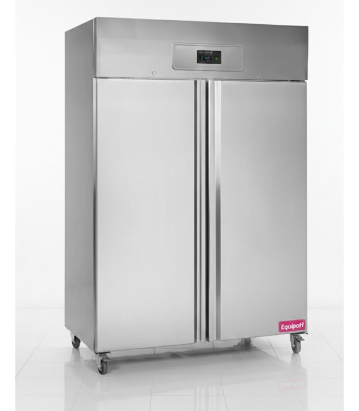 Refrigerador vertical TEFCOLD RK1010 de doble puerta en acero inoxidable con refrigeración forzada.