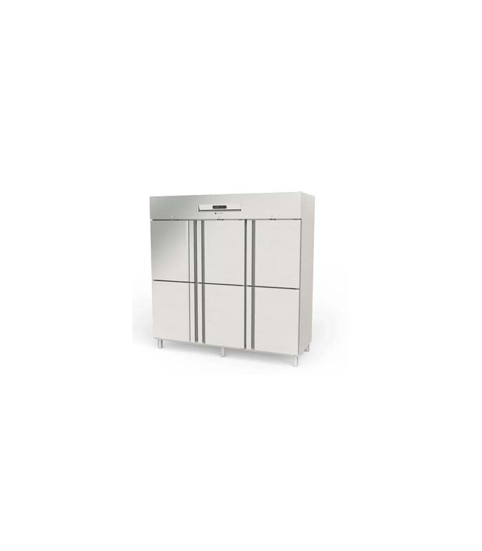 Cuatro puertas, guías embutidas con estantes reforzados, iluminación LED y control digital. El AGR-2006 ofrece todo lo que se espera de un armario de gama alta: acero inoxidable AISI-304, ventilación forzada con evaporador anticorrosión, aislamiento de 75 mm y componentes de alta durabilidad. Pensado para ser el centro operativo de tu cocina profesional.