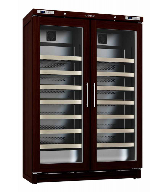 Nevera expositora para vinos Infrico EVV200MX para 200 botellas una buena opcion para bares, restaurantes para poder exponer vinos de manera óptima.