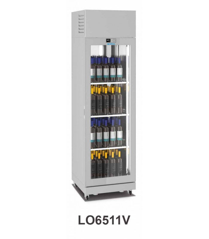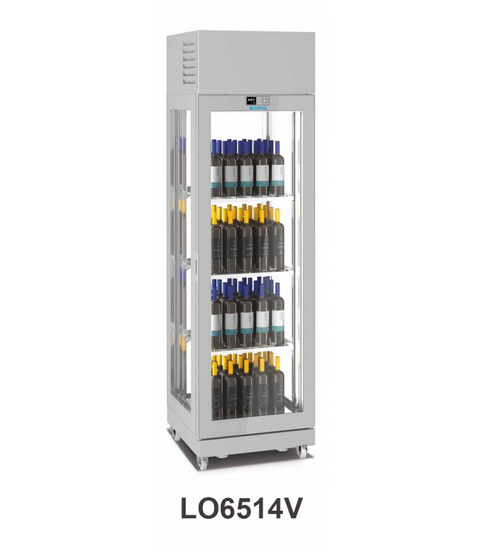 Gama de armarios expositores de Vino (+4ºC a +18ºC), con sistema de refrigeración ventilado que permite exponer diferentes tipos de vinos blancos, rosados o tintos.