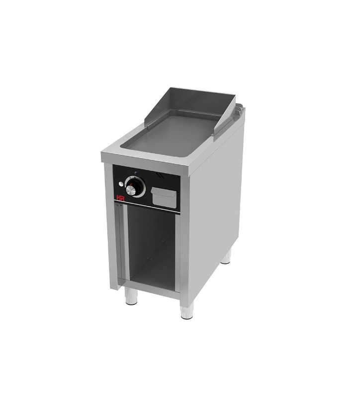 Plancha a gas de fondo 750 y con mueble Fainca HR FT7504E con 2 quemadores. Ideal para pequeñas cocinas, bares, chiringuitos, campings, ... cocina profesional en un espacio pequeño.