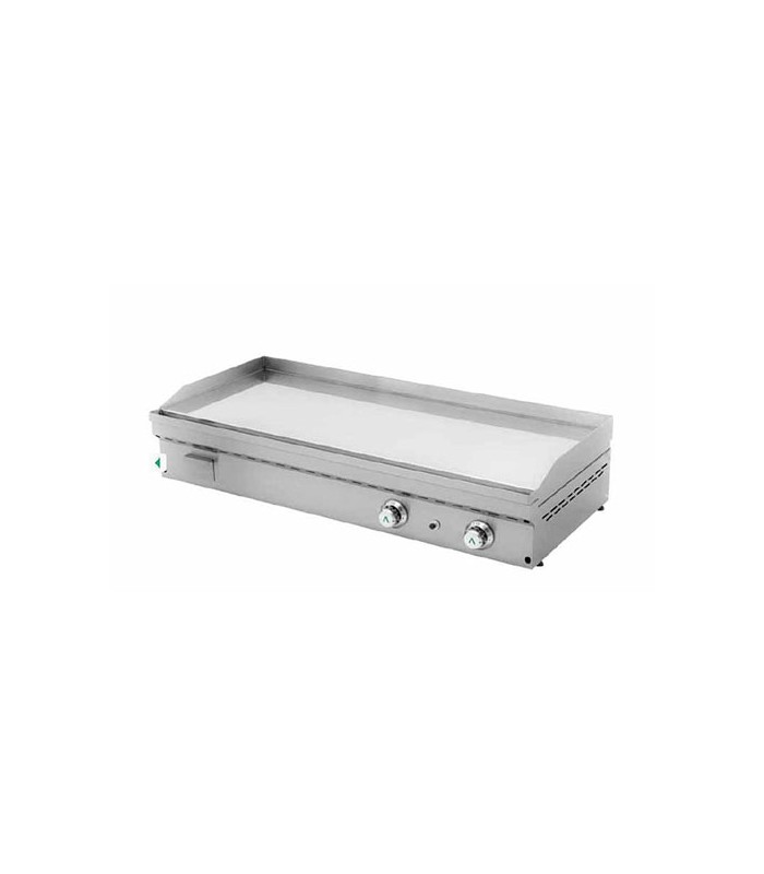 Plancha a gas de sobremesa Mainho FC-120 destaca por su placa de cromo duro de 20mm de espesor para una cocción homogénea y cajon recolector delantero. encendido por tren de chispaas en bateria - válvulas termostáticas con llama piloto. Resistente y eficiente, ideal para hosteleria.