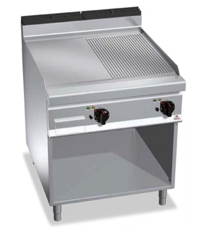PLANCHA eléctrica de pie G9FM8M-2 de Bertos serie 900 con superficie de plancha de acero rectificado de 800mm mitad lisa mitad acanalada.