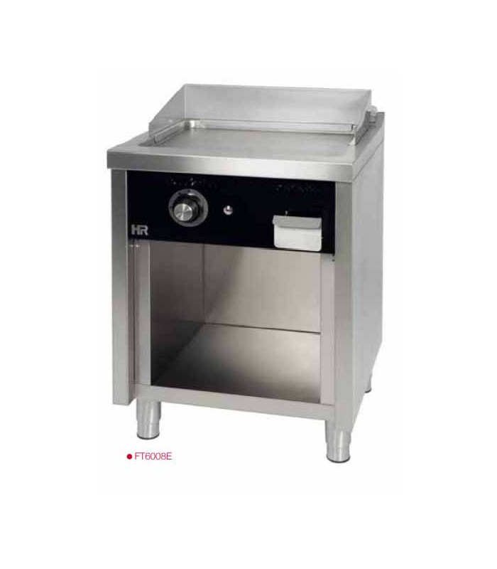 Plancha a gas de cromo duro fondo 600 y con mueble Fainca HR FT6006ECR con 2 quemadores. Ideal para pequeñas cocinas, bares, chiringuitos, campings, ... cocina profesional en un espacio pequeño.