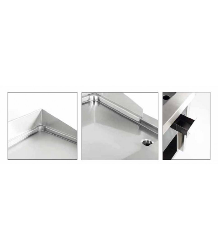 Gracias a su diseño con base de estantería, este fry-top es más robusto y cómodo de usar que los modelos de sobremesa. No necesitas soporte extra, y su altura ergonómica mejora la postura de trabajo. El cromo duro garantiza una cocción perfecta y una limpieza rápida, sin necesidad de productos agresivos.