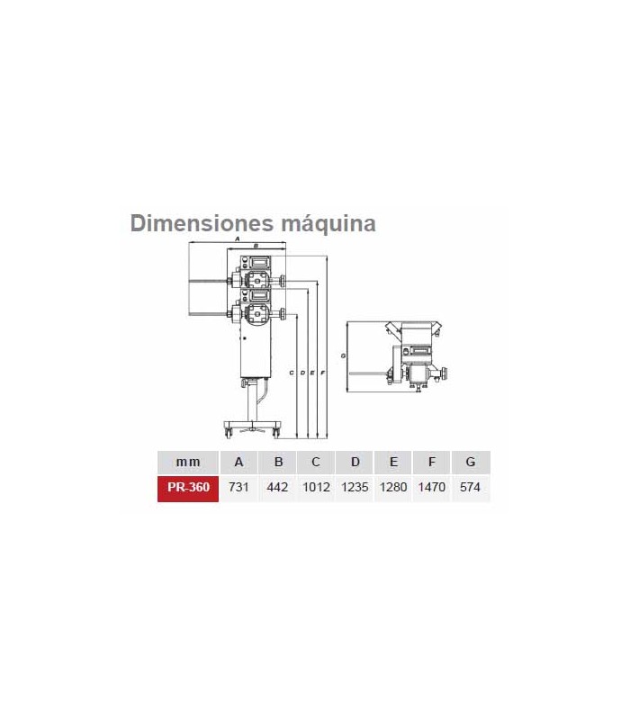 Equipado con 3 embudos giratorios inoxidables de 12, 15 y 17 mm de diámetro exterior. En opción 11, 20 y 25 mm.